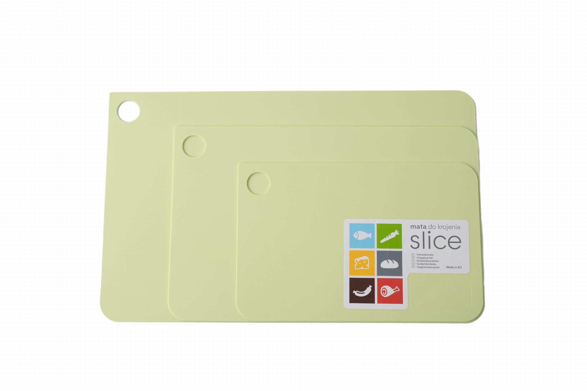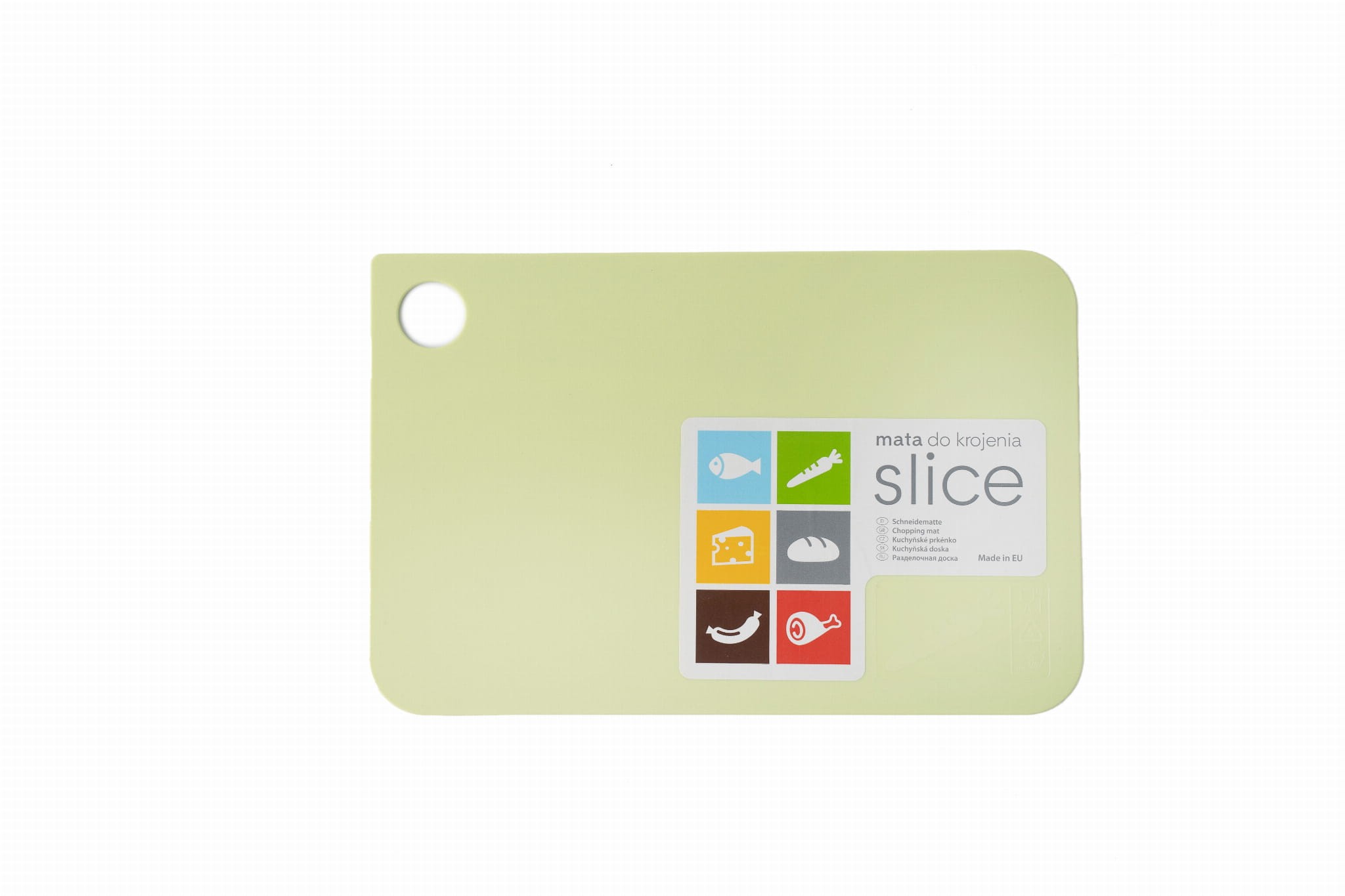 Deska do krojenia Slice to prawdziwa perełka dla miłośników nowoczesnego designu! Ultracienka i wytrzymała, łączy oszczędność miejsca z niezwykłą funkcjonalnością. Dostępna w sześciu przyjaznych kolorach, z których każdy dedykowany jest innej grupie artykułów spożywczych. Praktyczne piktogramy dodatkowo zwracają uwagę na przeznaczenie deski, dzięki czemu z łatwością zadbasz o to, by na przykład nie kroić świeżych owoców na desce do surowego mięsa.