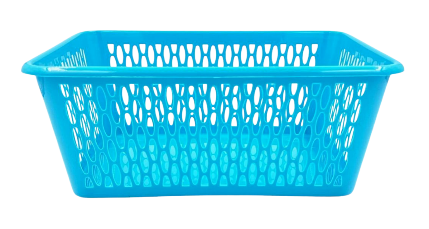 KOSZYK PLASTIKOWY AŻUROWY BŁĘKITNY O WYMIARACH 37X26X15