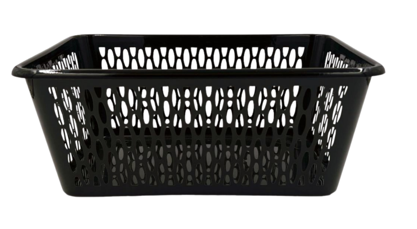 KOSZYK PLASTIKOWY AŻUROWY CZARNY O WYMIARACH 37X26X15