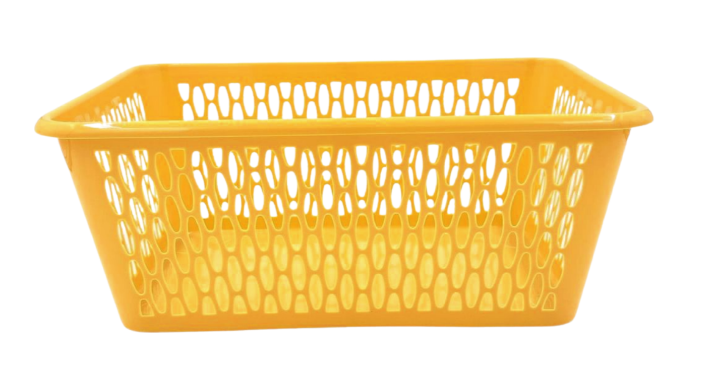 KOSZYK 37x26x15CM MUSZTARDOWY KJ4 KOSZYCZEK AŻUROWY POJEMNIK PLASTIKOWY 5903662402043