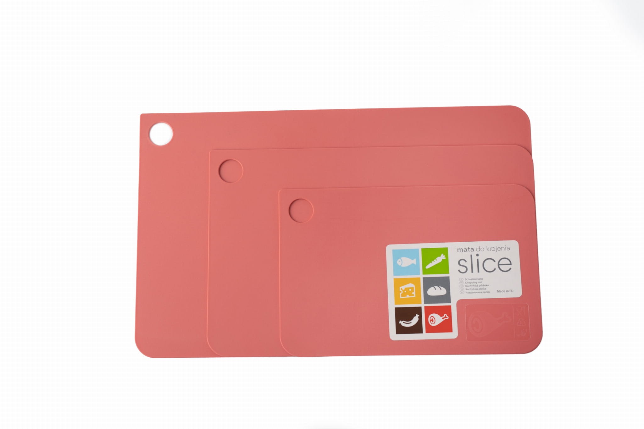 Deska do krojenia Slice to prawdziwa perełka dla miłośników nowoczesnego designu! Ultracienka i wytrzymała, łączy oszczędność miejsca z niezwykłą funkcjonalnością. Dostępna w sześciu przyjaznych kolorach, z których każdy dedykowany jest innej grupie artykułów spożywczych. Praktyczne piktogramy dodatkowo zwracają uwagę na przeznaczenie deski, dzięki czemu z łatwością zadbasz o to, by na przykład nie kroić świeżych owoców na desce do surowego mięsa.