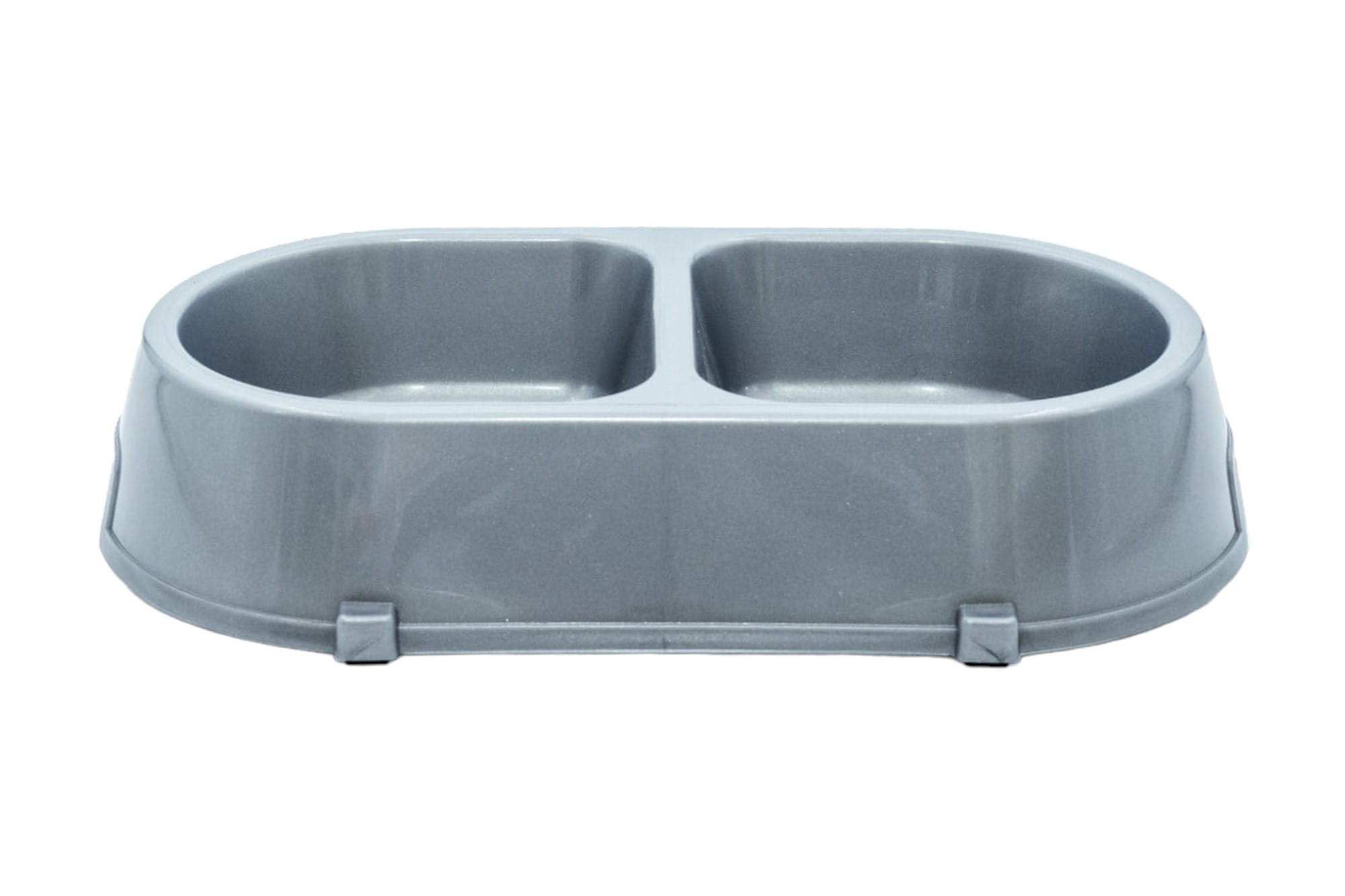 PODWÓJNA MISKA DLA PSA PLASTIKOWA SREBRNA