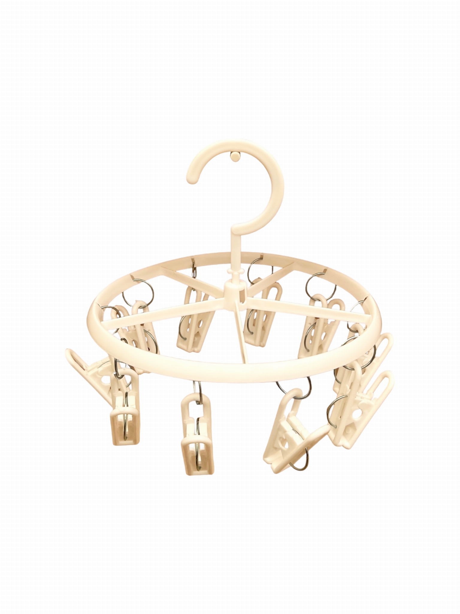 Obrotowy wieszak, typu karuzela posiada 10 solidnych klipsów/klamerek z mocną sprężyną.
