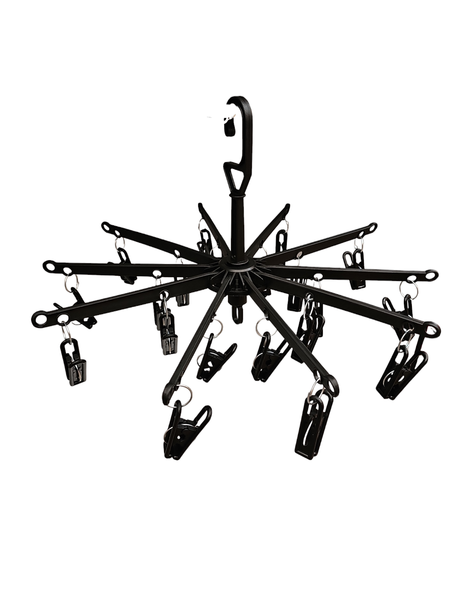 Obrotowy wieszak, typu karuzela posiada 20 solidnych klipsów/klamerek z mocną sprężyną.