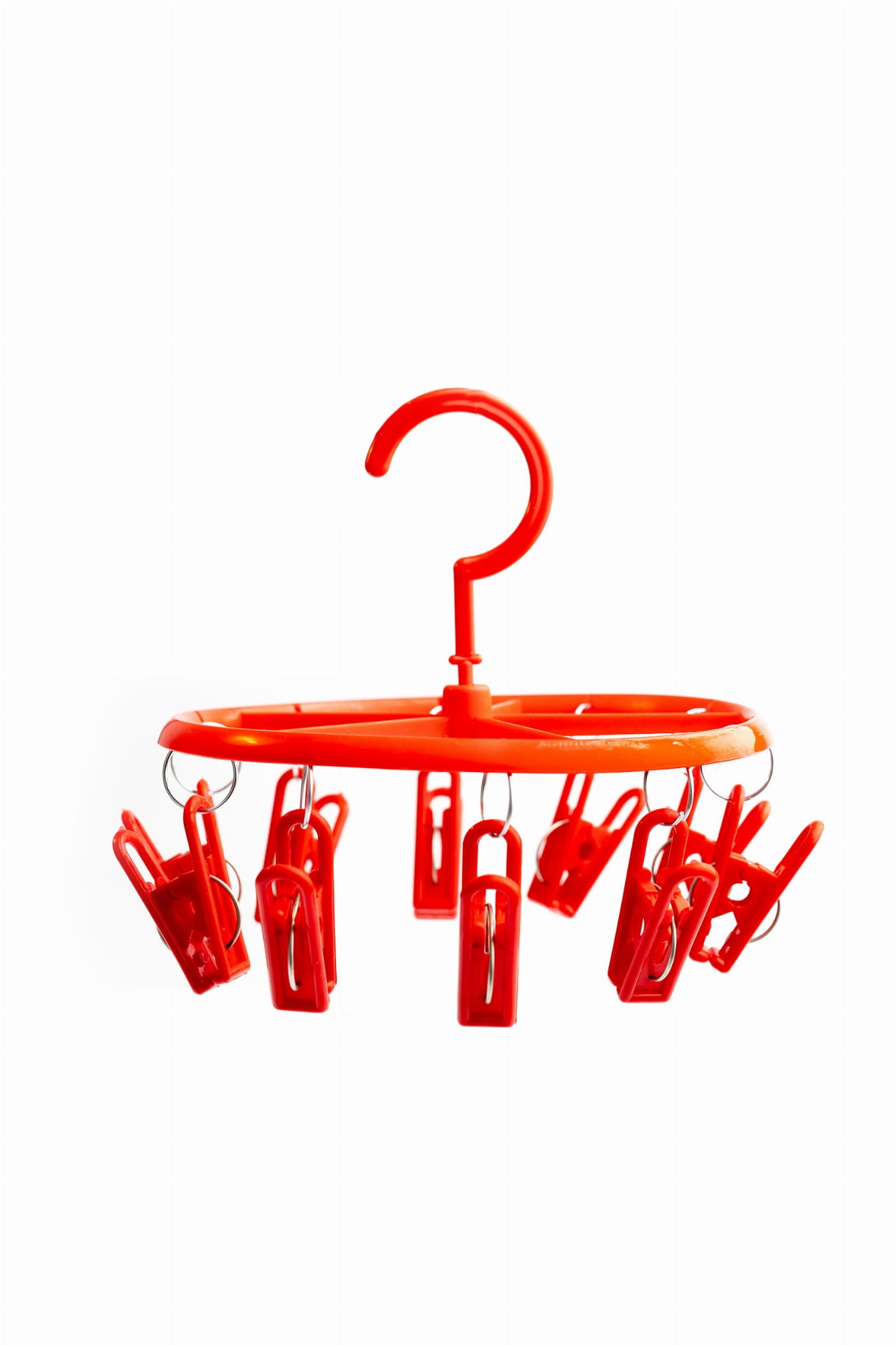 Obrotowy wieszak, typu karuzela posiada 10 solidnych klipsów/klamerek z mocną sprężyną.