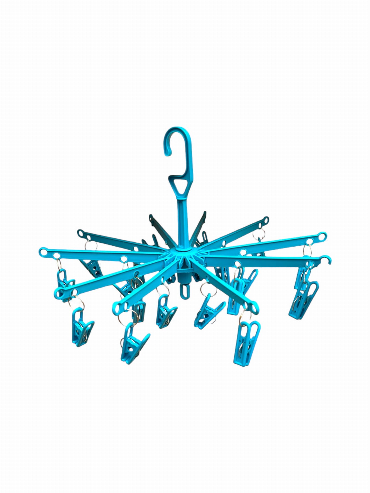 Obrotowy wieszak, typu karuzela posiada 20 solidnych klipsów/klamerek z mocną sprężyną.