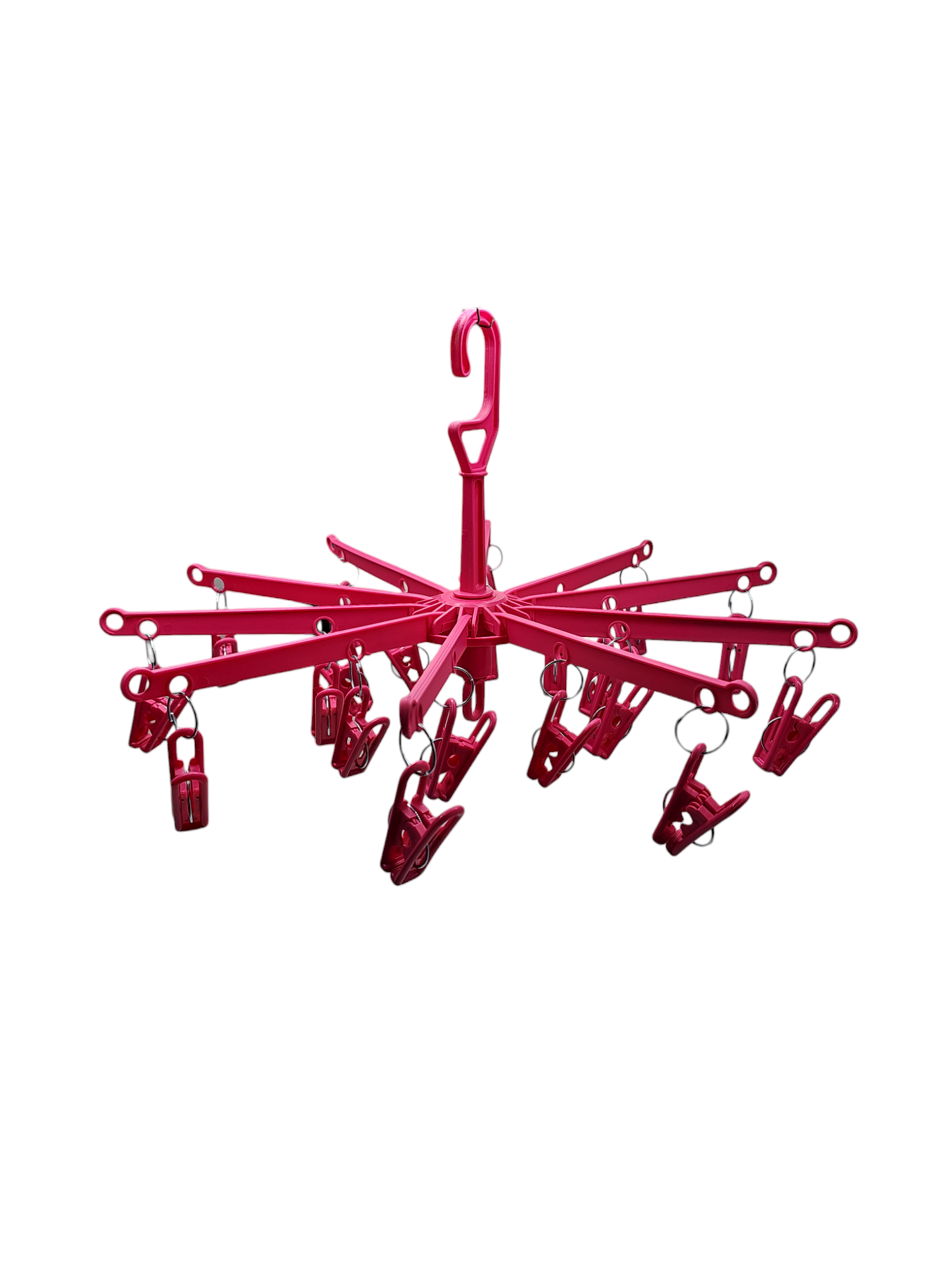Obrotowy wieszak, typu karuzela posiada 20 solidnych klipsów/klamerek z mocną sprężyną.