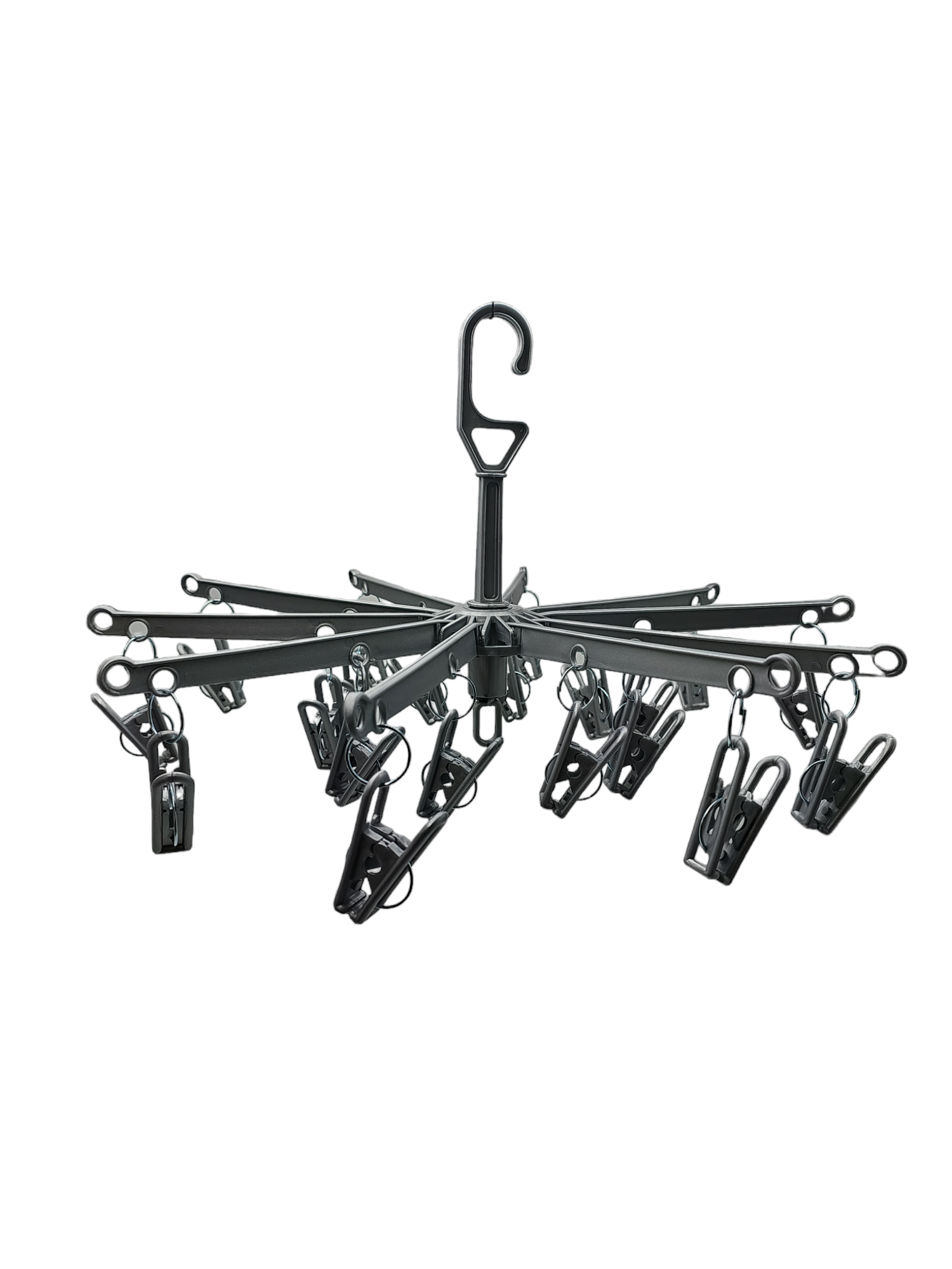 Obrotowy wieszak, typu karuzela posiada 20 solidnych klipsów/klamerek z mocną sprężyną.